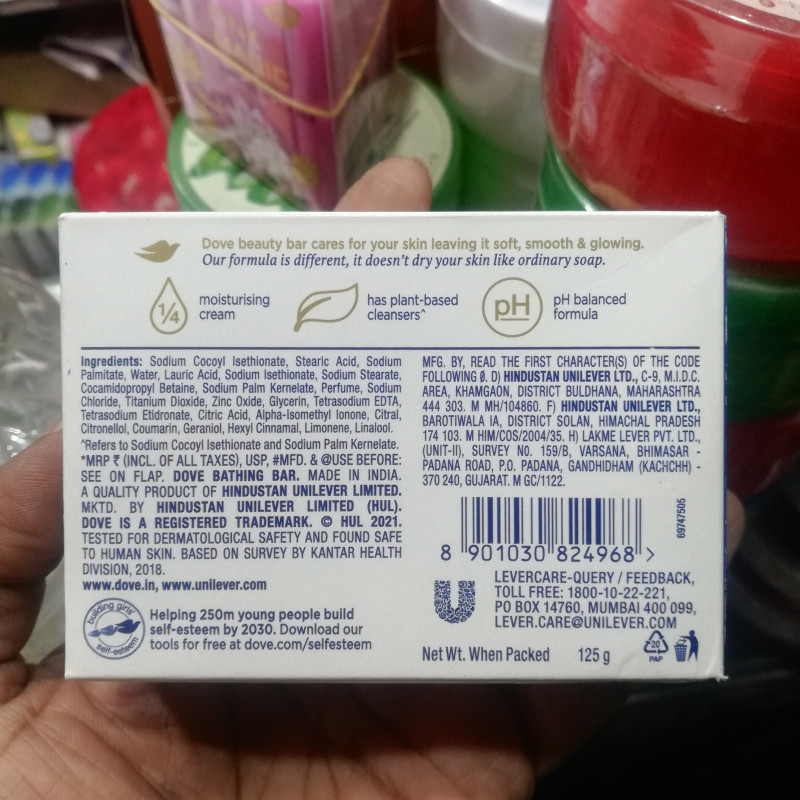 Dove Cream Bathing Beauty Bar combines a gentle cleansing formula with Dove’s signature ¼ moisturizing cream to give you softer, smoother and more glowing skin with every shower. What makes Dove different? Dove’s beauty bars gently cleanse your skin and help retain its natural moisture rather than stripping it away. While ordinary soaps may leave your skin feeling dry and tight, Dove cream Beauty Bar helps your skin maintain its natural moisture barrier and keep skin hydrated. Its moisturising and nourishing formula leaves skin soft, smooth and glowing. Dove is the No.1 Soap Brand recommended by dermatologists. It is pH balanced and mild on skin making it suitable for all skin types. It has gentle cleansers which are suitable for dry and sensitive skin also. It cares for your skin and washes away germs. Regular soap may dry out your skin, but the classic moisturizing formula of Dove bars will leave skin softer, smoother and more glowing. For best results, lather up your Dove Cream Beauty bathing bar and massage the smooth, creamy lather over your face and body before rinsing thoroughly. Dove cares for skin and washes away germs. Try Dove and feel the Dove difference. Get soft, smooth and glowing skin with a bathing bar that cares like a cream - a bigger bar, more Dove, more glow, more savings!