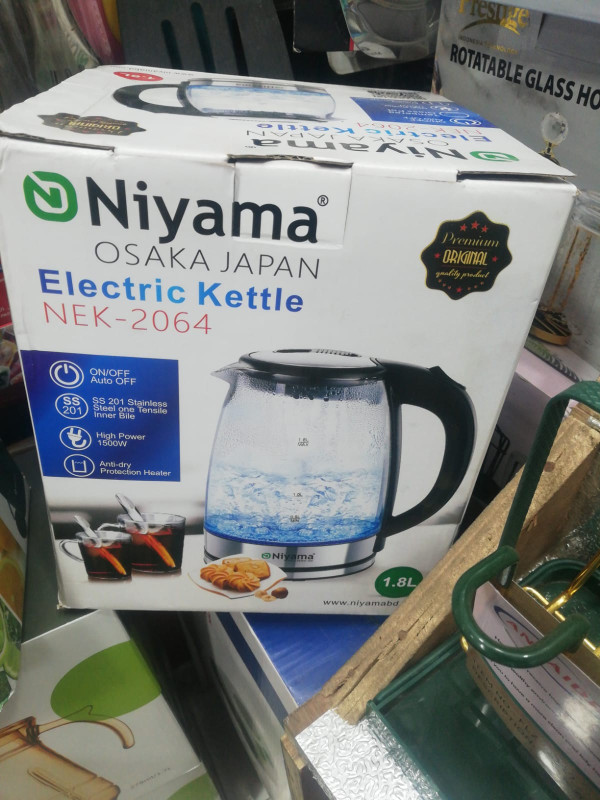 Introducing the NEK-2064 Electric Kettle, a versatile and efficient appliance for your daily hot water needs. This electric kettle features a modern glass body design, adding a touch of elegance to your kitchen. With a capacity of 1.8L, it provides ample space for boiling water for tea, coffee, or other hot beverages. The 360° rotational base allows for convenient serving and handling from any angle. The concealed stainless steel heating element ensures fast and efficient heating, while also providing durability. The kettle is equipped with an automatic shut-off feature, turning off the kettle when the water reaches its boiling point, providing safety and peace of mind. The on/off switch with a light indicator allows for easy operation, while the cord storage keeps your countertop tidy. The hinged lock lid ensures hassle-free pouring and easy cleaning. Additionally, the overheat protection feature prevents any damage from excessive heating. Experience the convenience and functionality of the NEK-2064 Electric Kettle, an essential appliance for your kitchen.