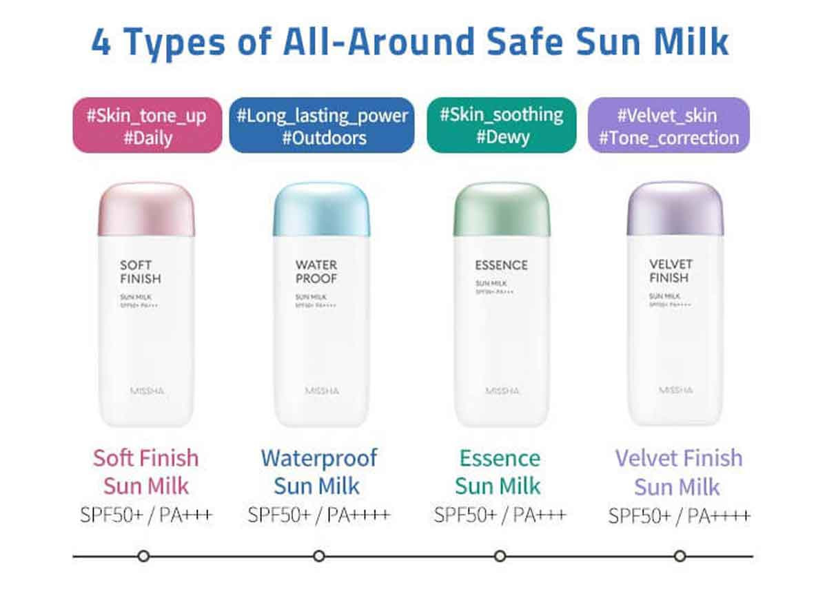 MISSHA All Around Safe Block Soft Finish Sun Milk SPF50+/PA+++ is lightweight and refreshing sun milk formula, perfect for daily use. At the same time, it is water and sweat resistant too.