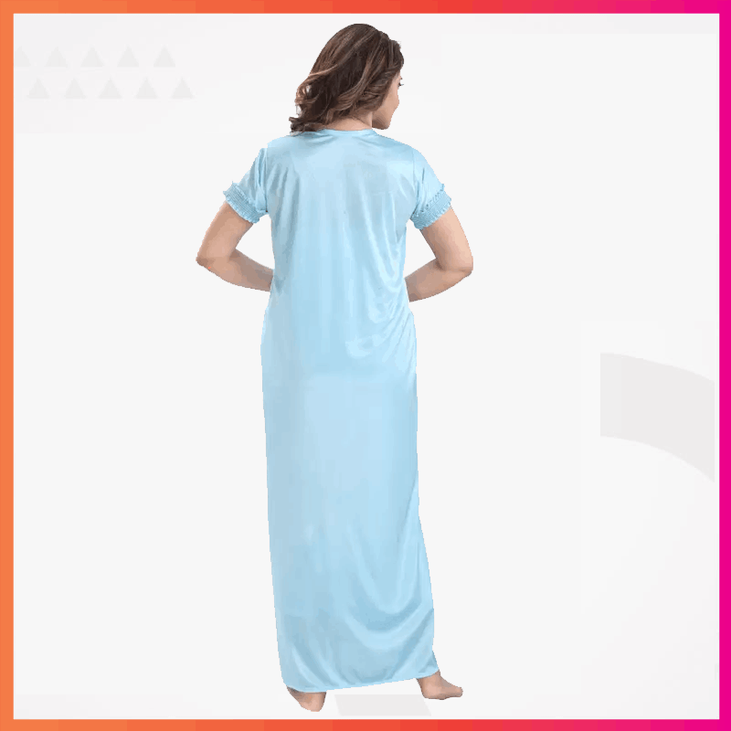 2-Part Long Solid Night Dress Set A Fashionable and Comfortable Choice for Nighttime Wardrobe Color Family- Sky Blue