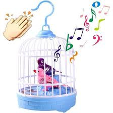 • • Electric Chirping Birds Birdcage Voice Control Toy