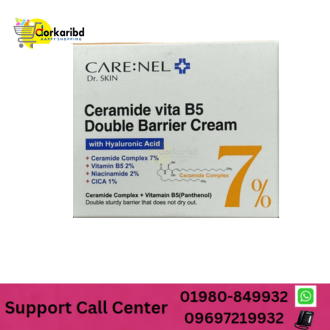 The Care:Nel Dr. Skin Double Barrier Cream is a powerful, dermatologist-formulated moisturizer designed to repair and strengthen the skin’s natural barrier while providing deep hydration. Its combination of 7% Ceramide Complex, Vitamin B5, and Hyaluronic Acid ensures optimal care for sensitive, dry, and damaged skin.