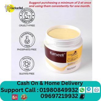 চুলের ড্যামেজ নিয়ে চিন্তিত আর পার্লারে হাজার হাজার টাকা খরচ করতে চান না। Dorkaribd নিয়ে এলো অরিজিনাল Karseell Collagen Hair Mask। এটি আপনার রুক্ষ চুলকে করবে রেশমের মতো নরম আর আকর্ষণীয়।