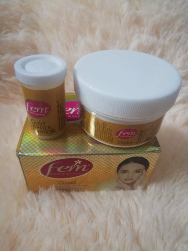 The new fem gold crème bleach comes with real, pure gold in it, which gives you the real golden glow that makes you stand out against the fakes. Not only does it come with a beautiful fragrance but also special moisturizing ingredients which give you a soft creamy experience of bleaching. Fem gold crème bleach works wonders just in 15 minutes and leaves the skin radiant and glowing. The real gold particles added to the powder activator leave behind a soft golden shimmer and shine on the skin.