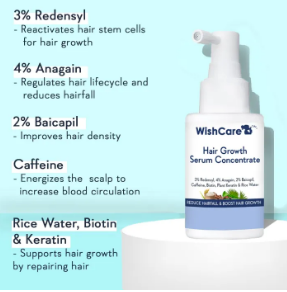 WishCare Hair Growth Serum Concentrate WishCare Hair Growth Serum Concentrate - 3% Redensyl, 4% Anagain, 2% Baicapil, Caffeine, Biotin, Plant Keratin & Rice Water - Hair Growth Serum for Men & Women(30ml)