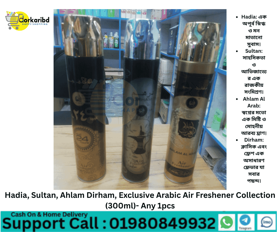 #DorkariBD #ArabicAirFreshener #Hadia #Sultan #AhlamAlArab #Dirham #HomeFragrance #LuxuryScent #OfficeDecor #FreshAir #ScentedLife