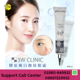 Eyes should not be a luxury; there is a need for comprehensive, cost-effective eye care services. It takes a 40-ml tube of 3W Clinic Collagen Eye Cream and comes at a relatively lower price than other competing brands in Bangladesh. This makes it a marvelous choice for individuals hoping to enjoy the benefits of collagen for the fragile skin under the eyes.