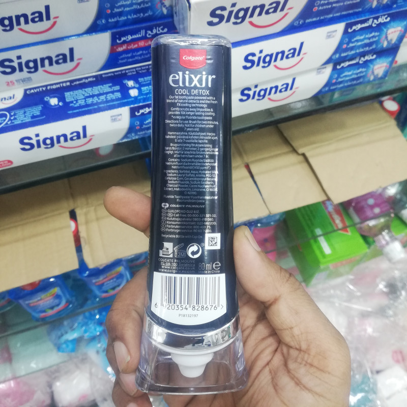 Enjoy the benefits of nature while caring for your smile with the Colgate Elixir cool detox toothpaste. This fluoride toothpaste is the first toothpaste from Colgate with a blend of natural extracts such as activated carbon and coconut. And thanks to the fresh FX technology, you will experience a fresh, cooling feeling that lasts 10 times longer compared to conventional toothpaste with fluoride. This activated carbon toothpaste gently removes impurities and leaves a beautiful, healthy smile
