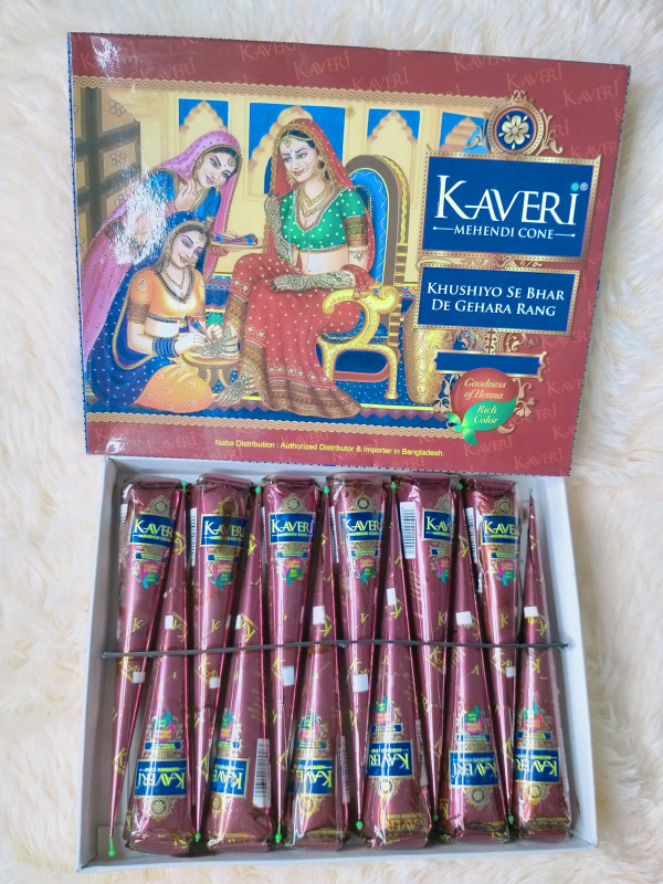 Kaveri Original Mehendi Cone (12 pcs Full Box) — প্রাকৃতিকভাবে গাঢ় লাল রঙ আর নিখুঁত ডিজাইনের সেরা সমন্বয়!