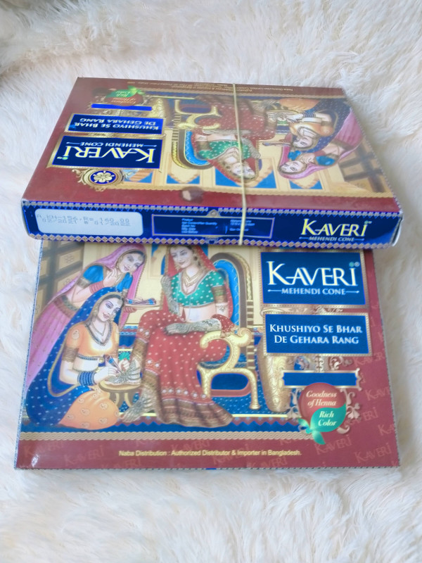 আপনার হাতের সাজকে পূর্ণতা দিতে নিয়ে এলাম ভারতের অত্যন্ত জনপ্রিয় এবং বিশ্বস্ত ব্র্যান্ড Kaveri Original Mehendi Cone। যারা কেমিক্যালমুক্ত এবং সম্পূর্ণ প্রাকৃতিক মেহেদি খুঁজছেন, তাদের জন্য কাভেরি মেহেদি এক নম্বর পছন্দ। এটি আপনার ত্বককে দেয় চমৎকার গাঢ় রঙ এবং দীর্ঘস্থায়ী সুঘ্রাণ।