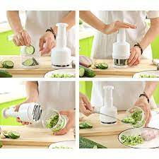 The Vegetable Onion Chopper for chop vegetables like carrots, celery and radishes for an instant salad. This Chopper is great for onions and even garlic so your fingers don't smell and it saves time. Put the onion/vegetable inside the chopping bottom- then press down the palm. Then press down the button with your palm of your hand-the more you hit the finer the food are minced. With every slap- the finer the food gets and turn into your desired shape.