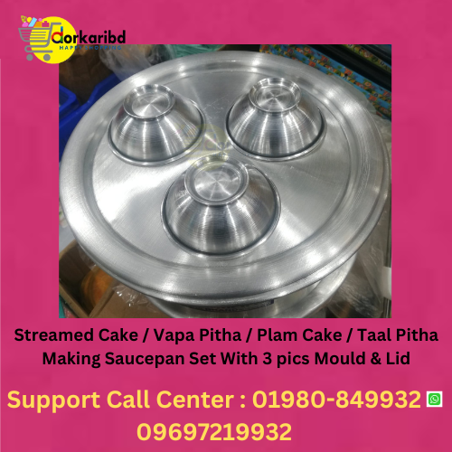 Vapa Pitha /Streamed Cake / Plam Cake / Taal Pitha Making Saucepan Set With -3pics Mould & Lid