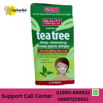Beauty Formulas Tea Tree Deep Cleansing Nose Pore Strip Nose Pore, Strips 6 Pieces WhiteWITH SKIN CALMING WITCH HAZEL, INSTANTLY LIFTS OUT DIRT, OIL & GREASE, REMOVES BLACKHEADS, UNCLOGS & TIGHTENS PORES, MADE IN THE UK