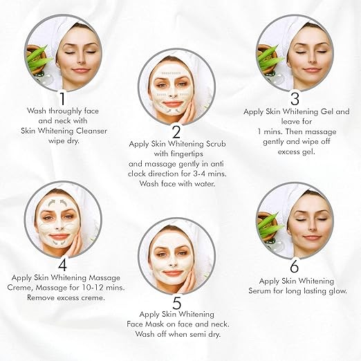 Apply Skin Whitening Cream generously on the skin and massage for 10-12 minutes in upward strokes. Wipe clean with moist tissue or cotton.
