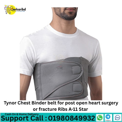 A chest binder is applied to the thoracic region to compress and bind the rib cage and provide splinting to the sternum while allowing sufficient flexibility to breathe comfortably.