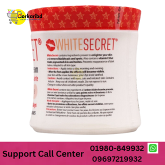 Has no artificial fragrances. Formulated with care Hygienic packaging Contains high-quality active ingredients. White secret lightening body lotion bright result from the very first 5 days! contains ingredients proven to enlighten your skin and remove blackheads and spots. contains vitamin E that treats pigmented skin and dark spots. if your skin has shriveled with age or creams have damaged you, come and take this wonder serum